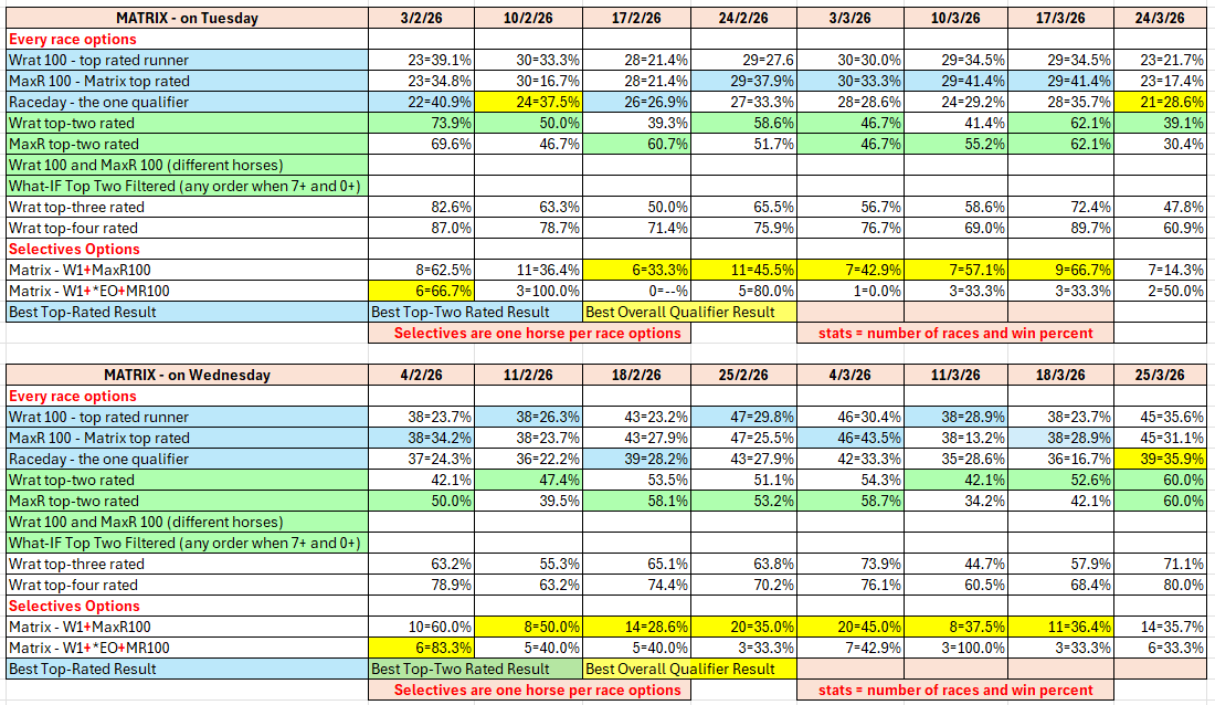 • Matrix - day by day analysis of Tuesday and Wednesday racing