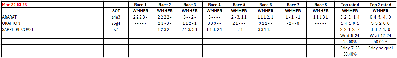 Wizard Ratings, Raceday, Matrix, and Selectives results