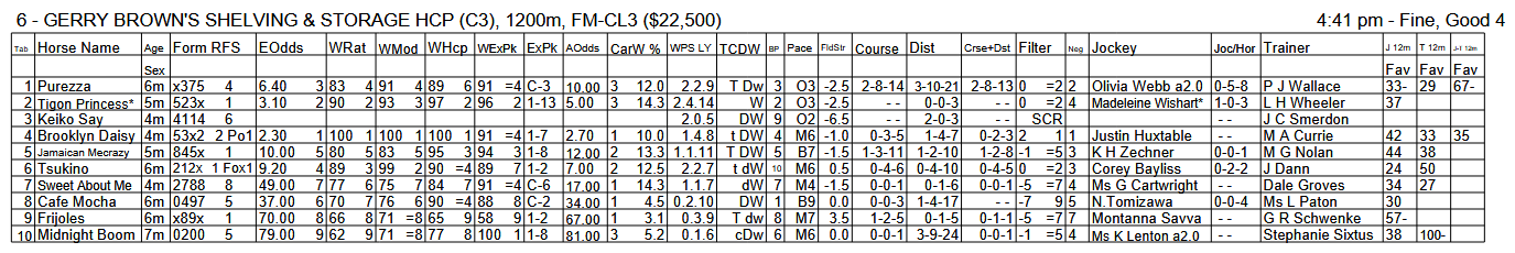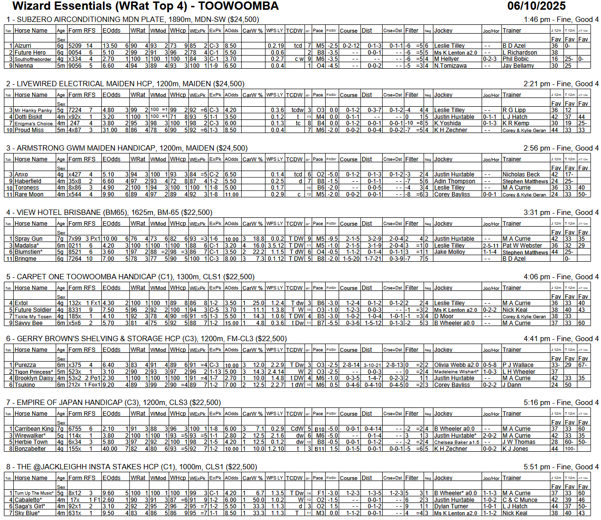 In addition to this Essentials WRat4 report there is also an Essentials Full-Field version available. Here is one race from that report for this meeting: