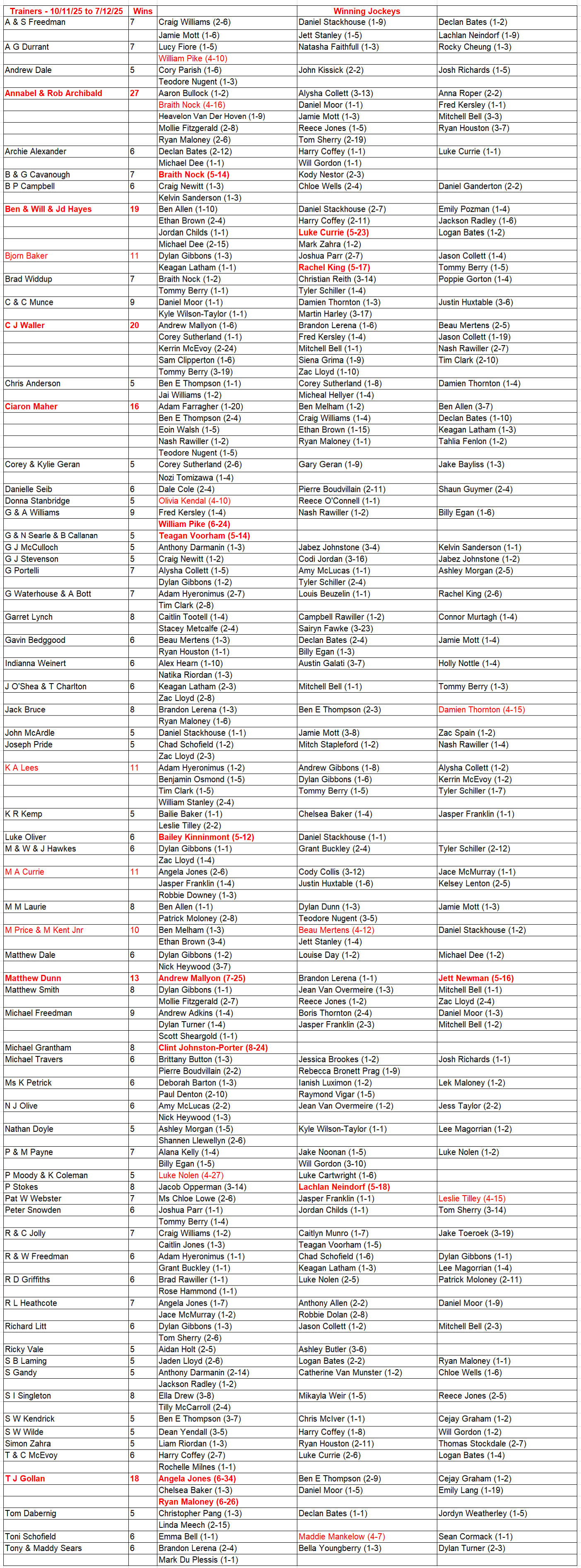 - Trainer-Jockey - Winning Combinations - Last 3 months