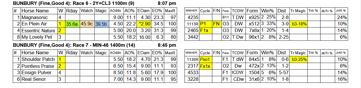 Each day The Wizard will publish on this page one of its Wizard Plus reports or special features, either completely or a part thereof. Today the Wizard Matrix First Four for Bunbury. The full report and all other reports for all meetings for today are available now for subscribers.