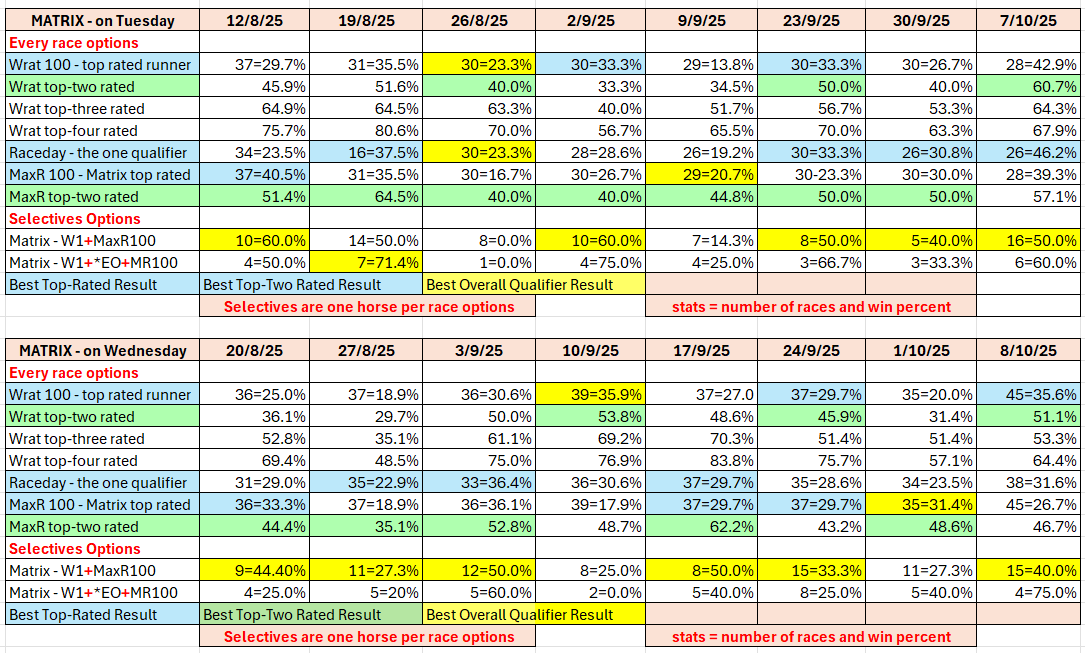 - Matrix - day by day analysis of Tuesday and Wednesday racing
