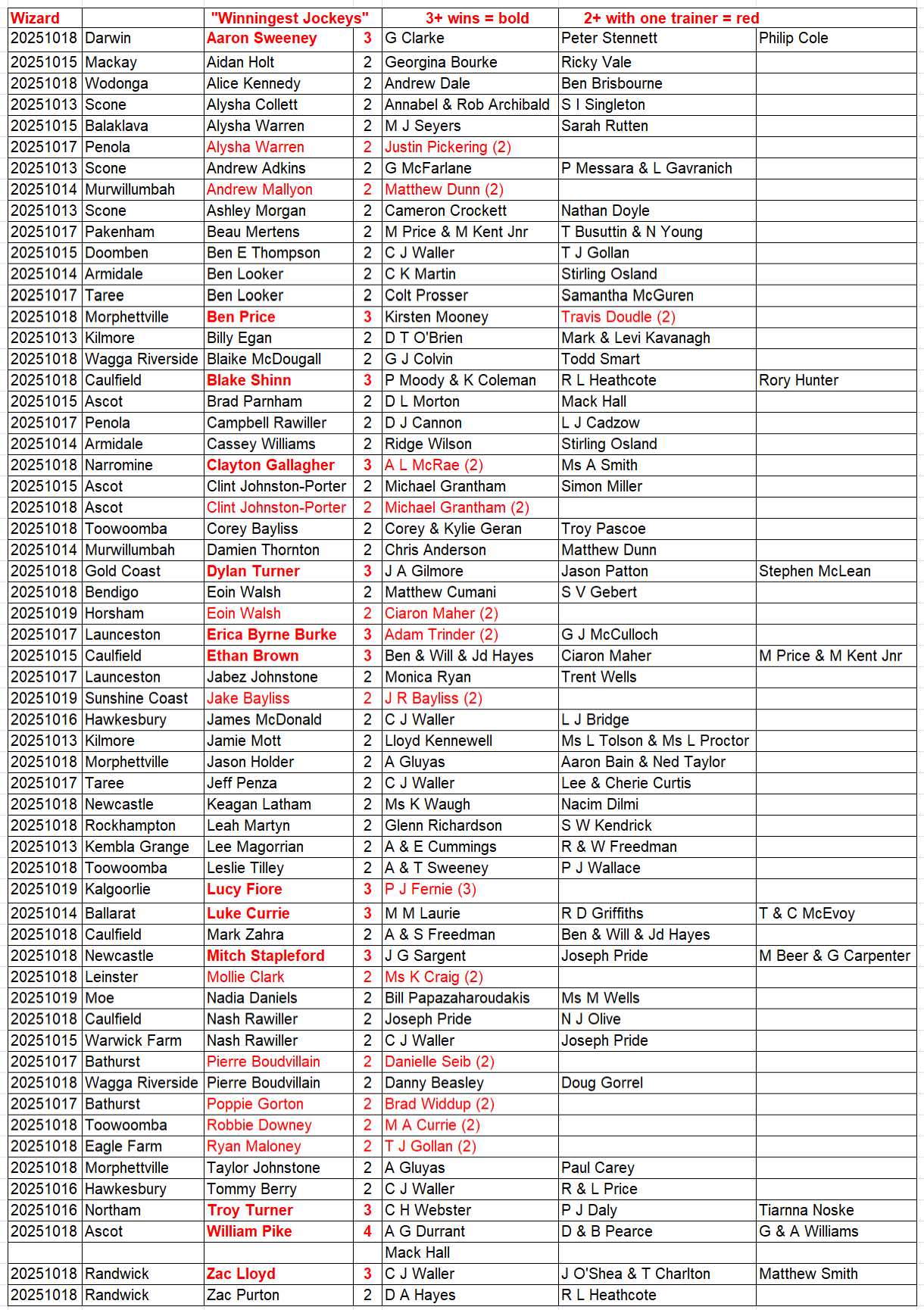 Australia's "winningest" jockeys last week and Winning Jockeys back-on