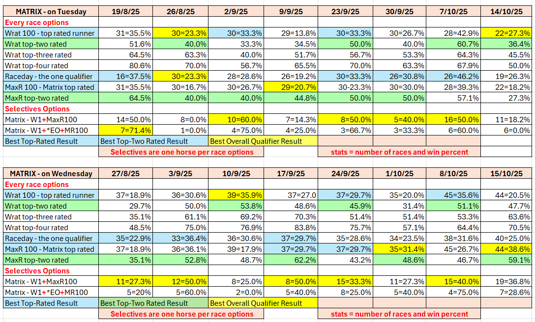 - Matrix - day by day analysis of Tuesday and Wednesday racing
