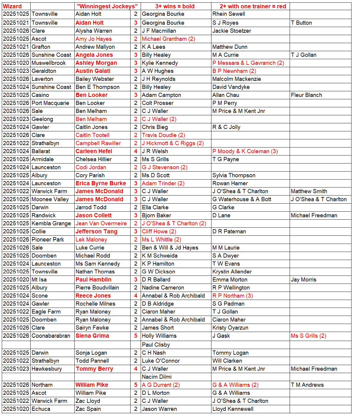 Australia's "winningest" jockeys last week and Winning Jockeys back-on