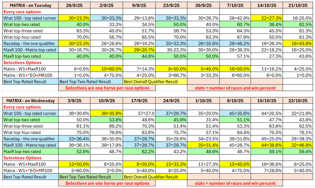 - Matrix - day by day analysis of Tuesday and Wednesday racing