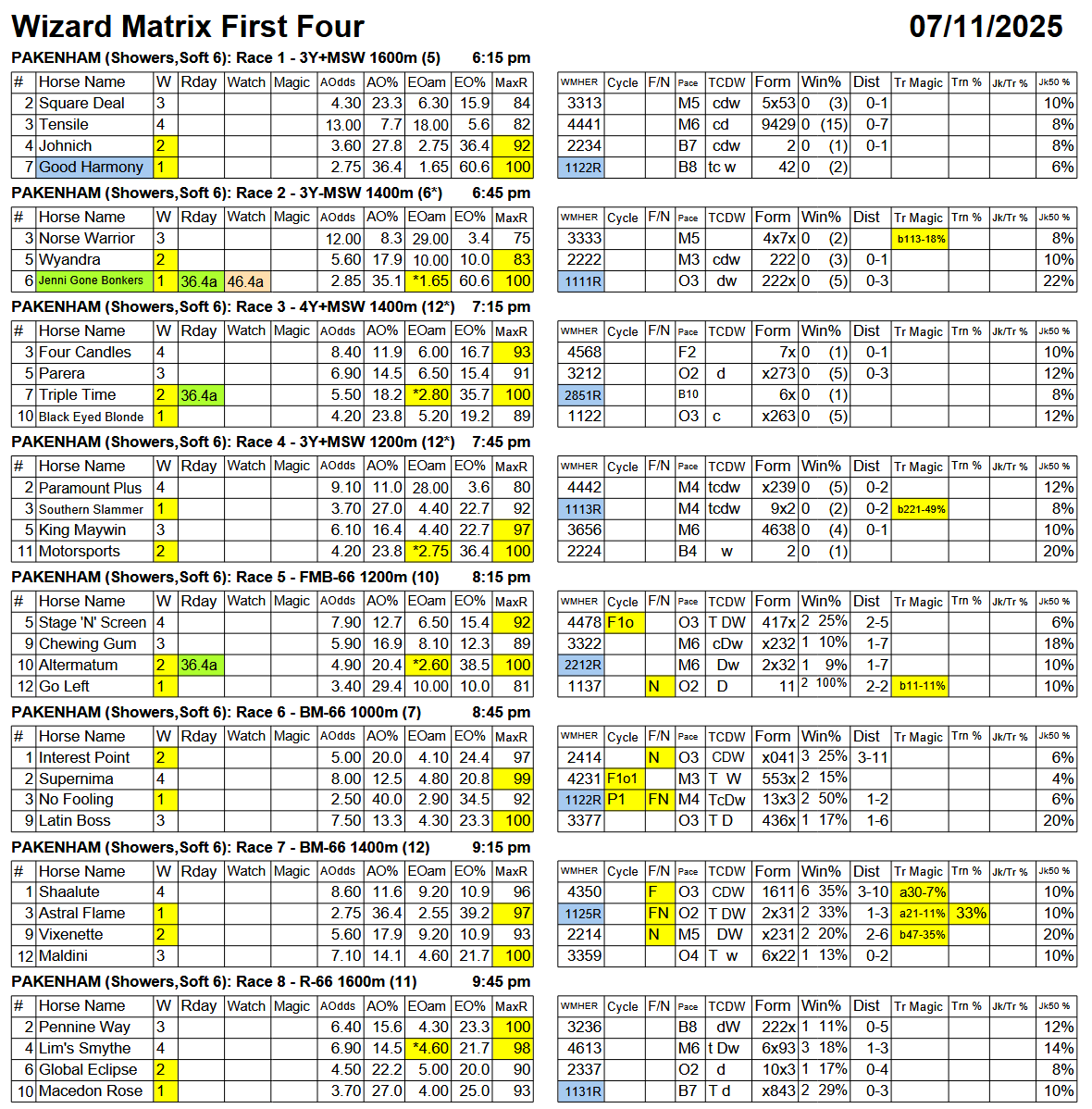 The Wizard Matrix report aims to assist subscribers contain the number of bets to manageable proportions and improve the strike rate.