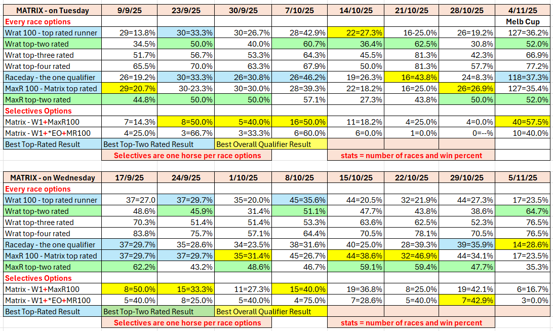 - Matrix - day by day analysis of Tuesday and Wednesday racing
