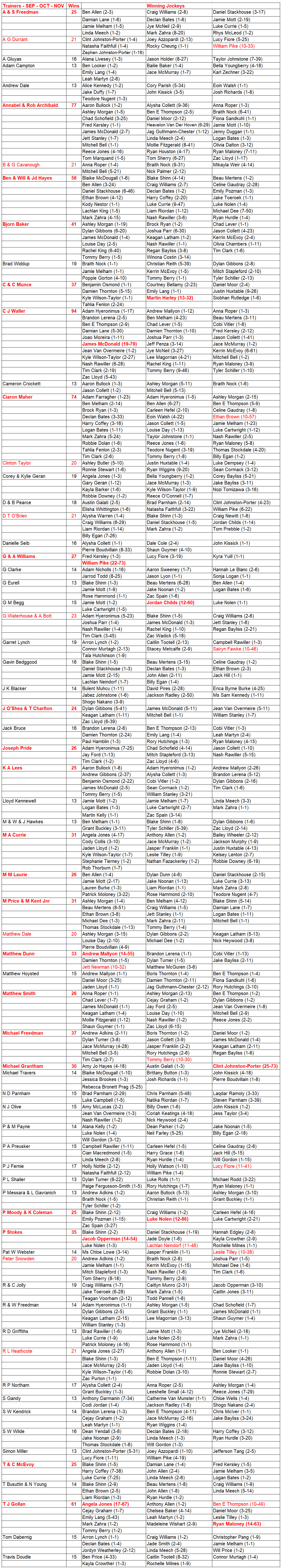 - Trainer-Jockey - Winning Combinations - Last 3 months