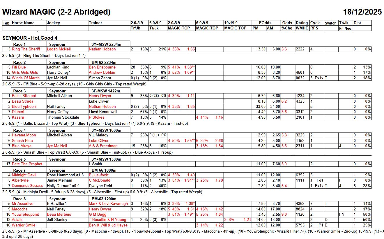 The Magic report is an important component of the Wizard's uniquely successful race-morning MATRIX report whose Selectives consistently outperform traditional rating methodologies.