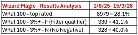 Wizard introduced the Magic report into its daily schedule on 14 September 2024. The results delivered in the 2024-2025 season under this (Wrat-F/N-odds) scenario have demonstrated the value of integrating this type of information into form analysis and selecting.