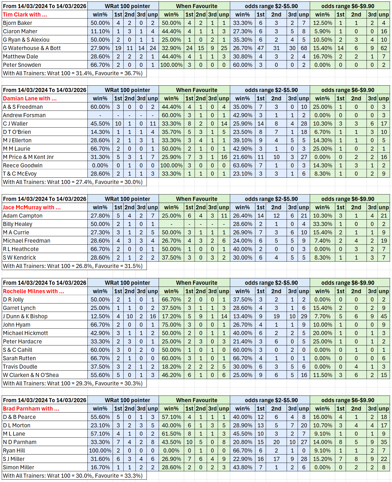In the Trainer and Jockey chapter there are stats based on data contained in the Wizard Magic Report. The stats covered the 2024-2025 race season.