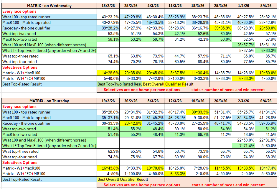 - Matrix - day by day analysis of Wednesday & Thursday racing