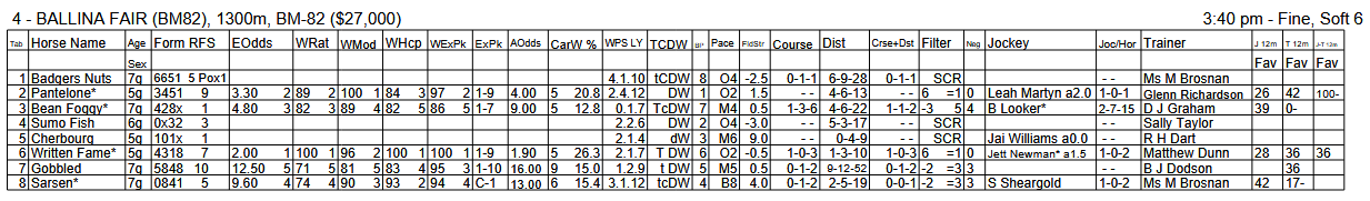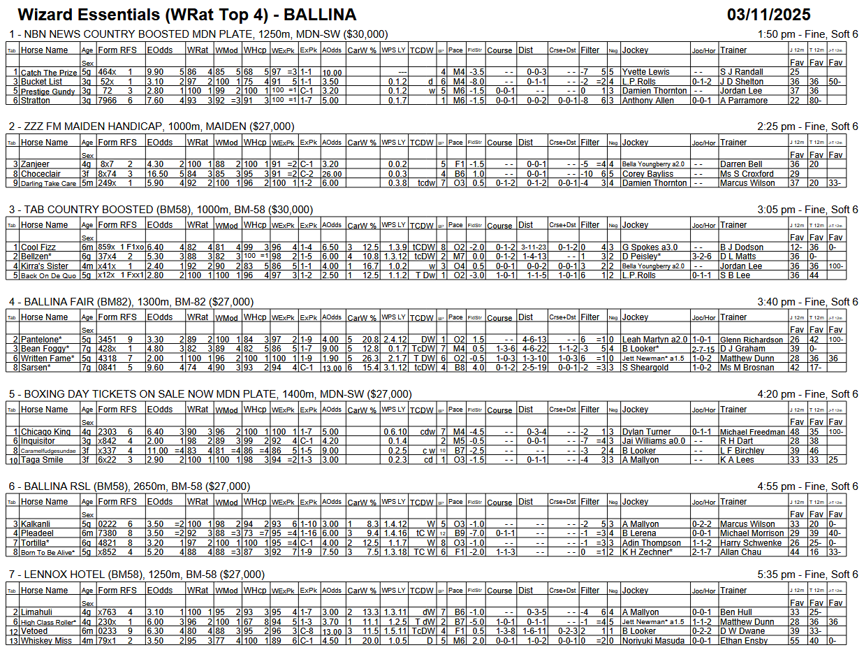 In addition to this Essentials WRat4 report there is also an Essentials Full-Field version available. Here is one race from that report for this meeting: